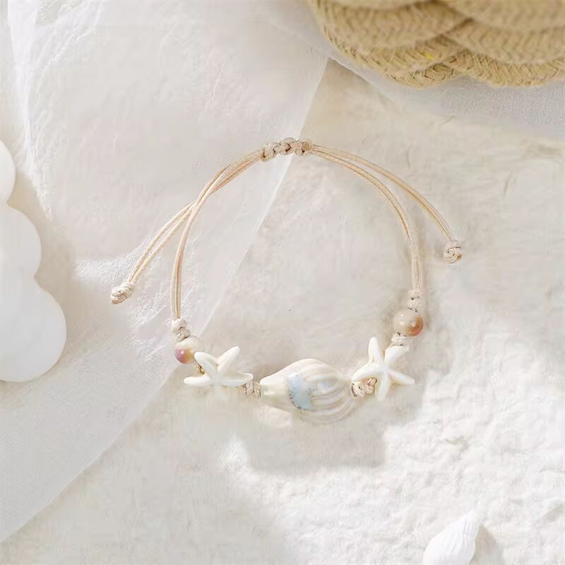 Bohemian Conch Starfish Shells Ceramics Beaded Bracelets for Women Girls Shell Beaded Beach Bangles Jewelry Gift Adjustable